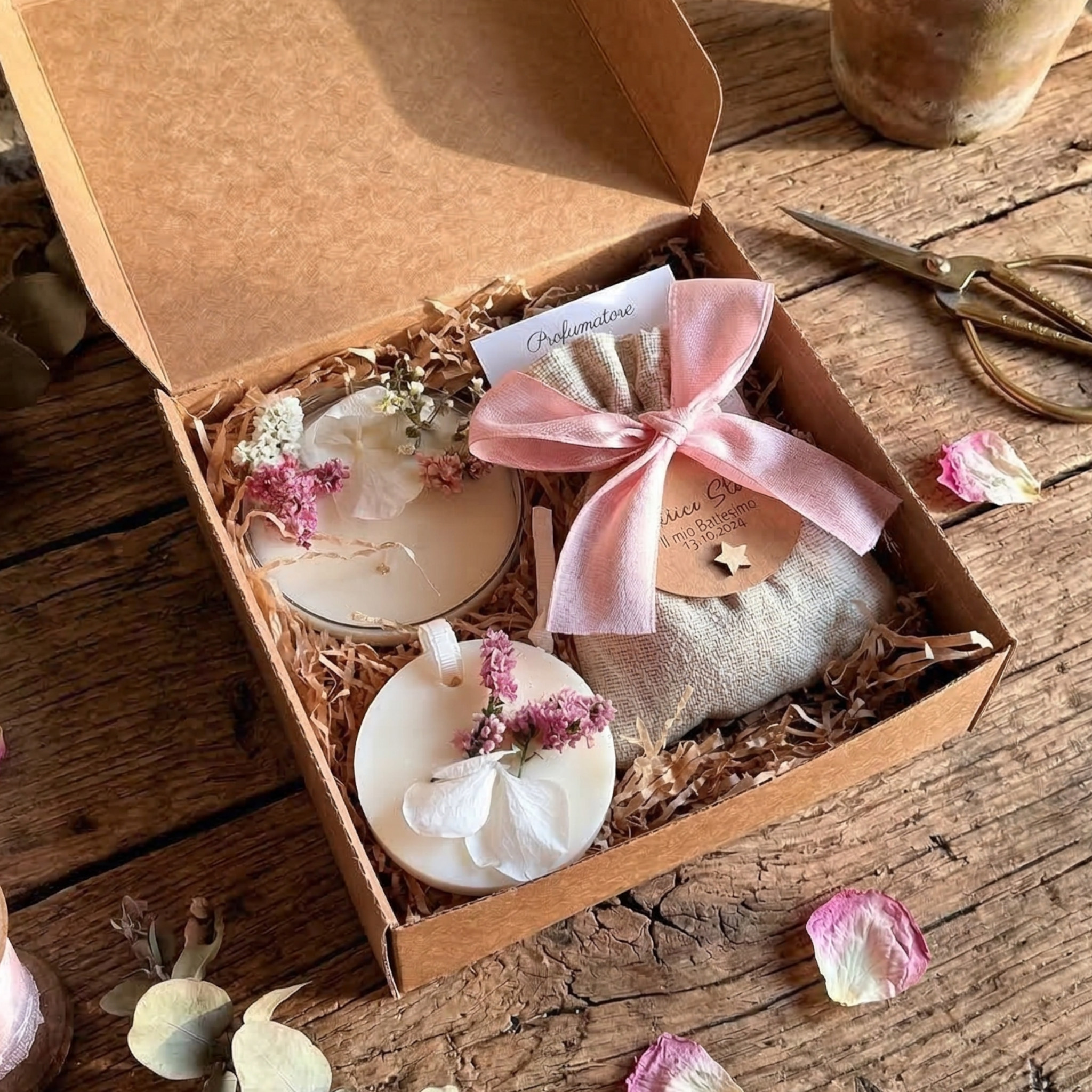 Scegli l'autenticità dei cofanetti regalo, creazioni uniche che celebrano la natura e l'artigianato italiano. Ogni nostra bomboniera unisce prodotti d'eccellenza a chilometro zero: dal pregiato miele dei Colli Euganei alle candele botaniche in cera di soia fatte a mano.